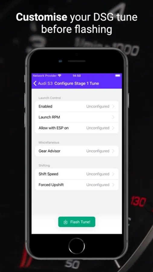 - Tweak common tune settings before flashing (boosted launch, 3 step launch RPM, gear advisor, shifting speed)