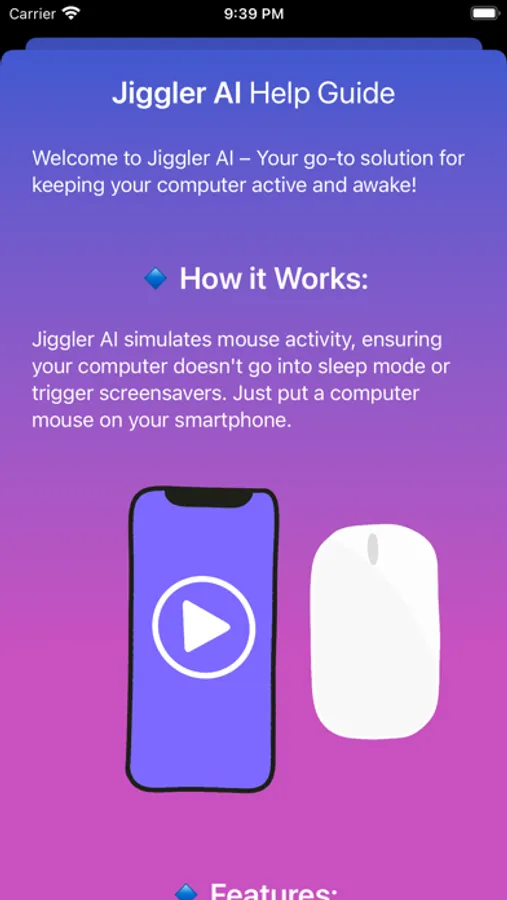 Never let your computer fall asleep again with AI Mouse Jiggler! Designed with both simplicity and power in mind, our app simulates mouse activity to keep your system active and awake. Whether you're presenting, streaming, or just need that extra time, AI Mouse Jiggler ensures uninterrupted activity.