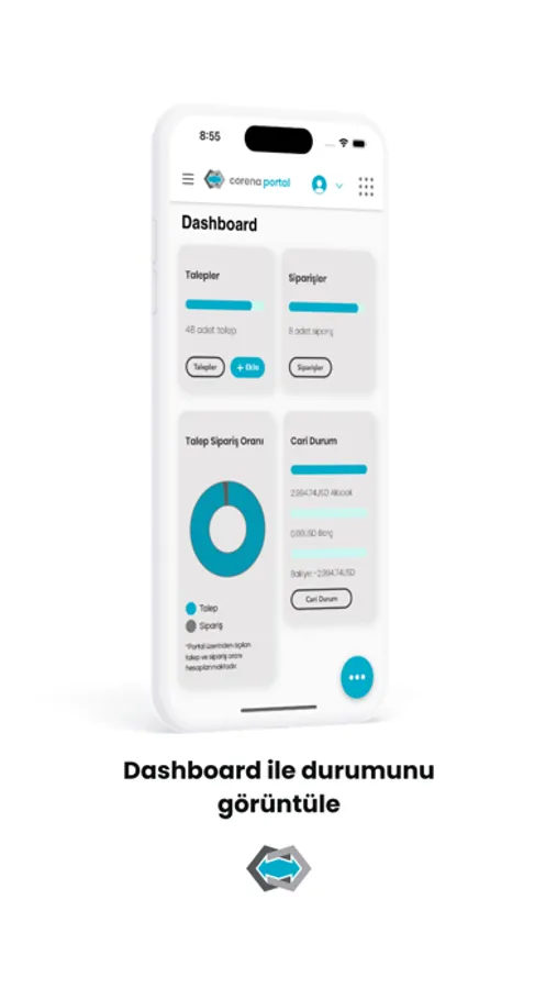 Corena Portal uygulaması, Corena müşterilerinin ve tedarikçilerinin sipariş , talep ve cari durumlarını takip edebilecekleri bir portal uygulamasıdır.