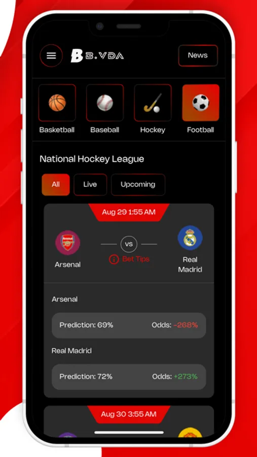 Unlock the door to an unparalleled sports experience with B.VDA, the all-in-one sports app designed specifically for fans, punters, and aficionados. Are you a sports enthusiast looking for up-to-the-minute news and bet tips across Basketball, Baseball, Hockey, and Football? Look no further—B.VDA has got you covered!