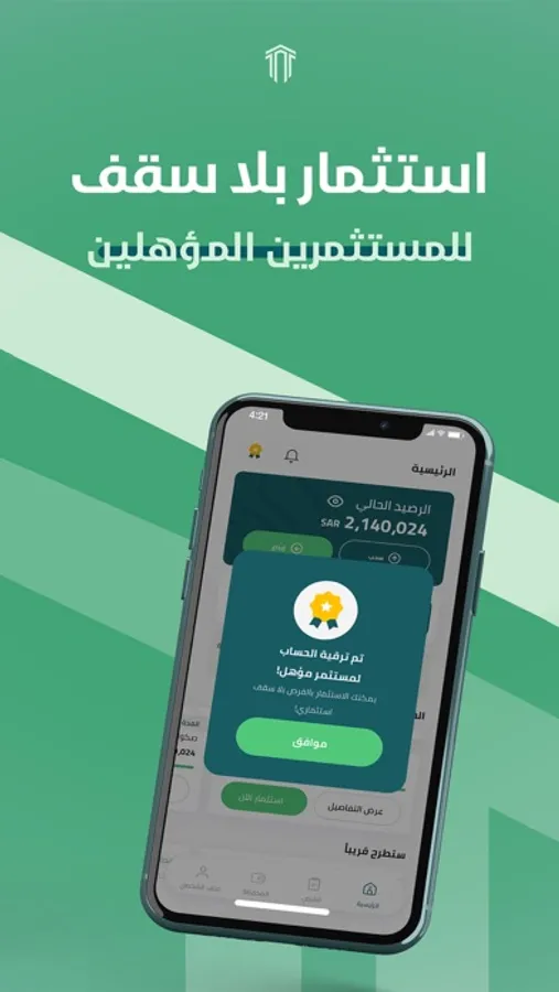 يتيح التطبيق للمستثمرين المؤهلين الاستفادة الكاملة من الفرص الاستثمارية دون سقف استثماري محدد والاستمتاع بتجربة استثمارية مبسطة ومرنة في الصكوك الإسلامية.