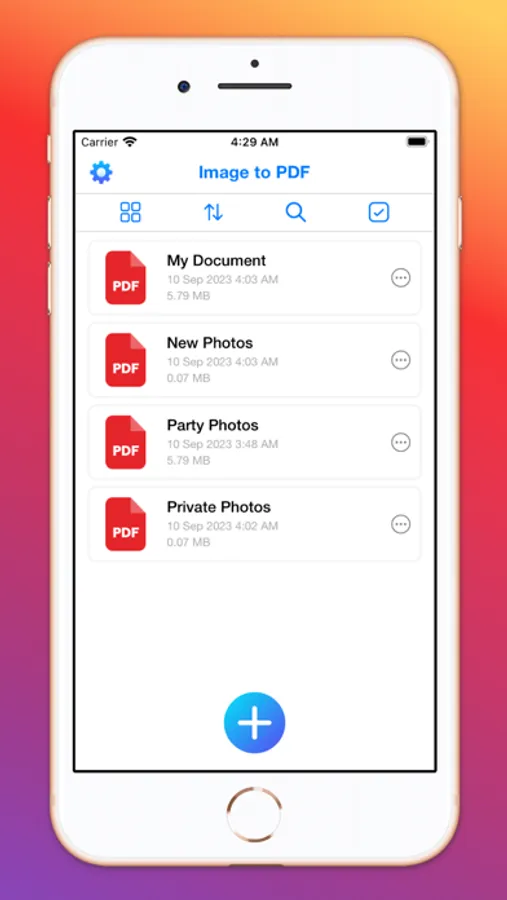 Streamline your organization by automatically sorting images and PDF files by name, size, creation date, modification date, and more. Manual sorting options are also available.