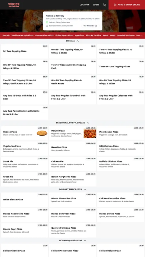 The official mobile app for Venice NY Pizza in 2029 Lynnhaven Pkwy #750, Virginia Beach, VA 23456, Norfolk, VA 23503!