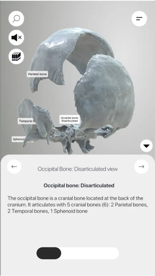 3D Osteology is your ultimate guide to the complex anatomy of the human skeletal system, focusing primarily on the cranium. Whether you're a healthcare professional, an academic researcher, or simply fascinated by human anatomy, this app is for you. With over 300 individually detailed structures linked to the cranium—and more coming soon—3D Osteology is an awe-inspiring exploration into one of the most intricate aspects of the human body.