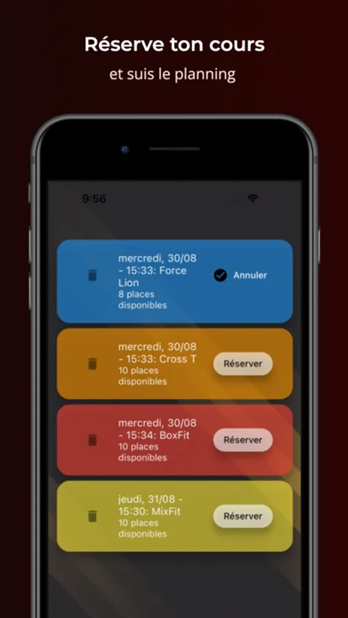 Réservation de Cours Collectifs : Planifiez vos séances de cross training en toute simplicité grâce à notre système de réservation. Choisissez parmi une variété de cours collectifs et assurez-vous d'obtenir votre place.