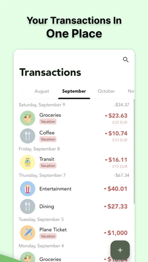 Currency Support: Seamlessly manage finances across currencies, with current conversion rates.