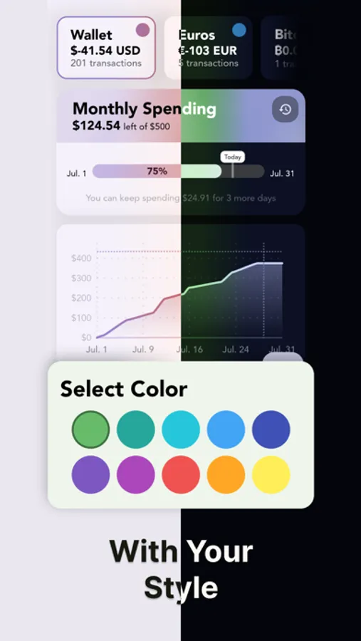 Personalization at Your Fingertips: Dive into the elegant interface with dark mode and personalize the app's accent colors to suit your style.