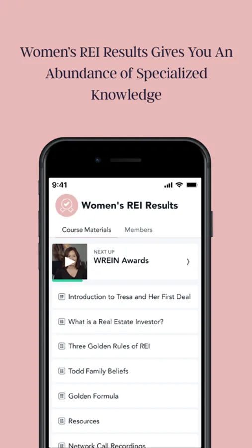 In the WREIN app, members can access networking opportunities, exclusive events, and life changing content to create financial freedom and build a legacy.