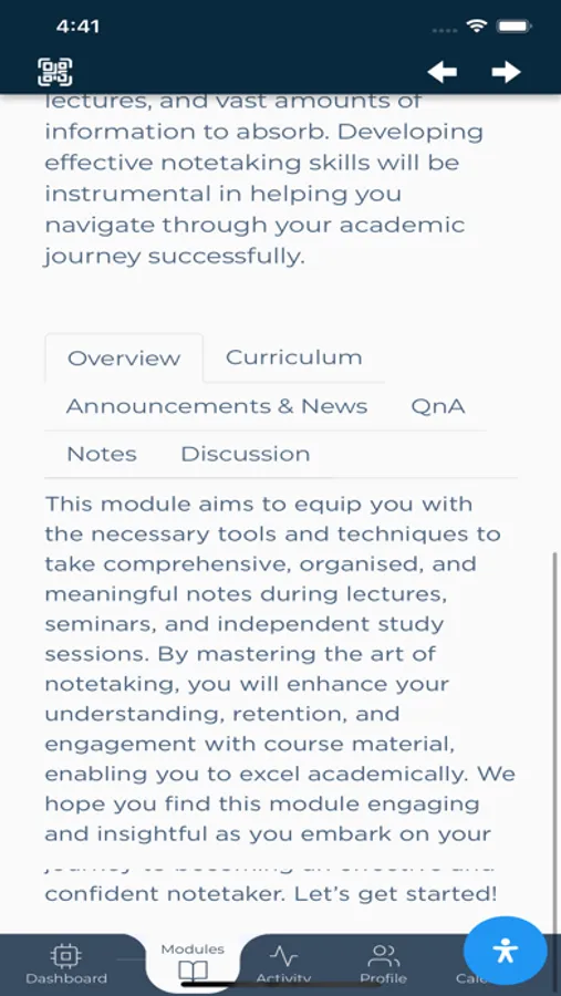 Our modules are comprehensive guide to life at university, outlining study skills, time-management strategies, course details, and university expectations.