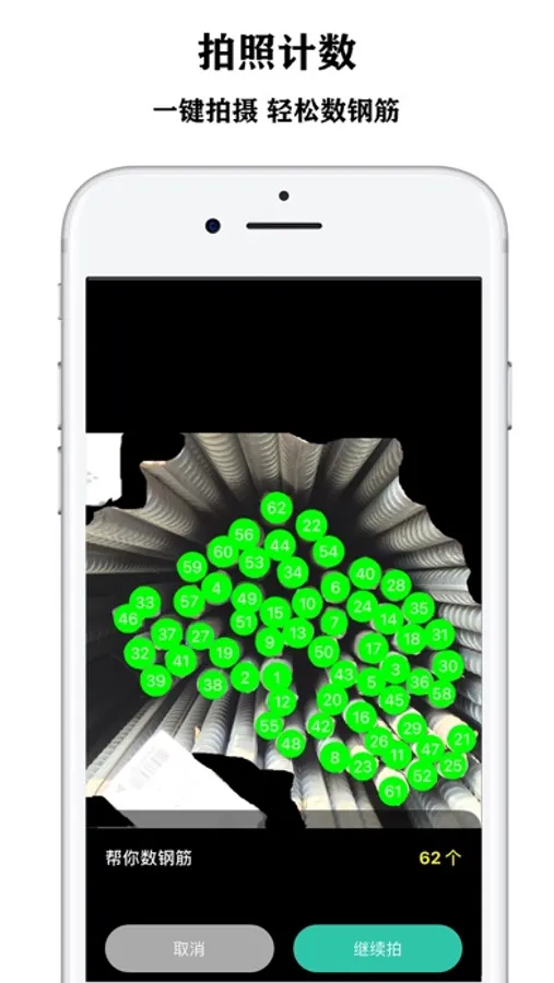 【 Photo counting 】: One click shooting, automatically counting steel bars, steel pipes, bamboo sticks, string, beans, etc., with high recognition accuracy and fast counting, improving work efficiency.