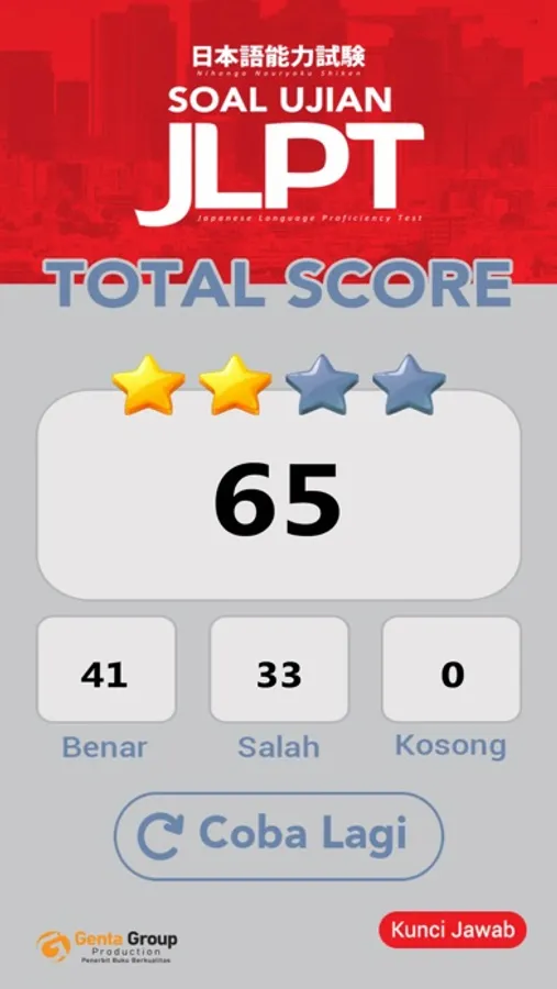 Berisi Simulasi JLPT N5 - N3, dilengkapi dengan sistem penilaian, kunci jawab & pembahasan.