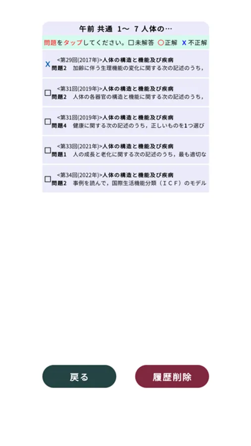②正解・不正解の履歴が残ります。