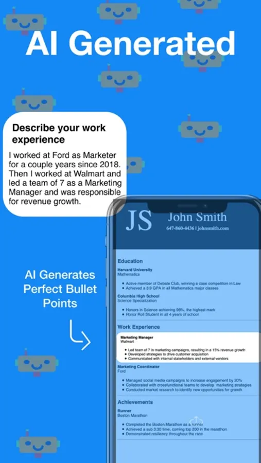 AI Resume Writer - the ultimate tool for crafting impressive resumes effortlessly. Say goodbye to hours of formatting and editing – with AI Resume Writer, you can create a polished and professional resume in a few minutes. Just answer 5 straightforward questions about your education, experience, and achievements, and watch as the magic unfolds.