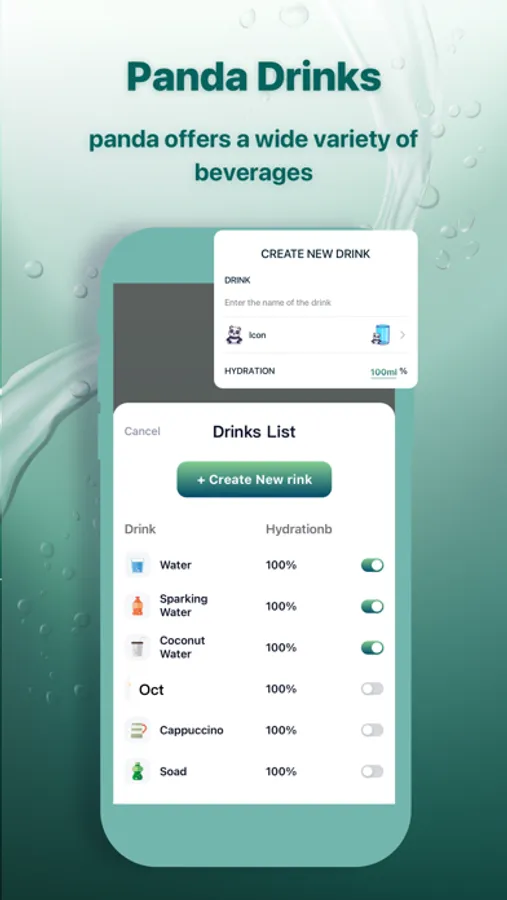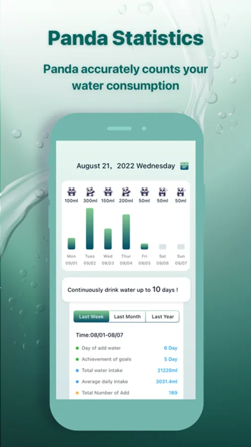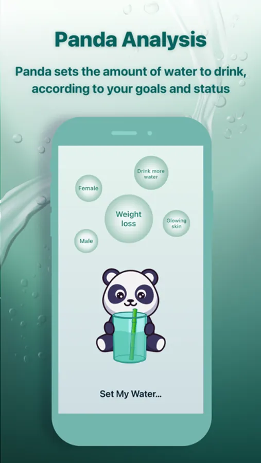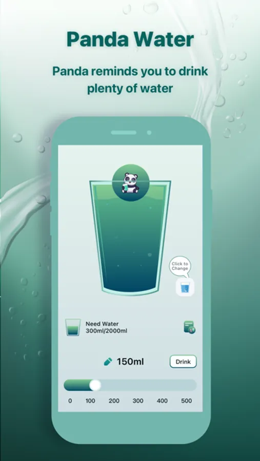 Panda sets the amount of water to drink, according to your goals and status.Panda wants everyone to have a healthy daily intake of water. It may be hard to stick to it every day, but having a good body as a reward will be a lifetime treasure for us.
