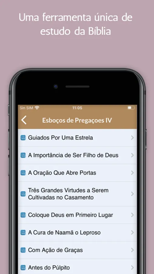 Aplicativo na que encontrará todo esboços de pregações que ajudarão você a estudar mais em profundidade a Biblia ou a pregar com o exemplo em qualquer momento ou lugar.