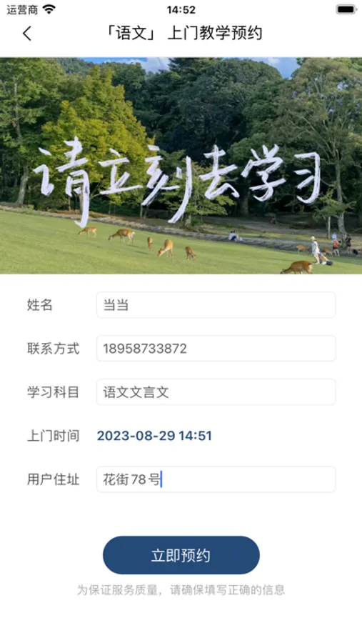 该app可以预约辅导老师上门辅导自己选取的科目的那一个薄弱的项目,十分快捷方便