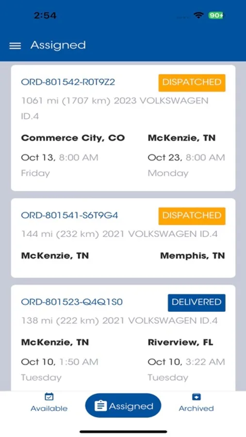 - Available Orders – Search available orders and request assignment by different pick up and/or delivery locations.