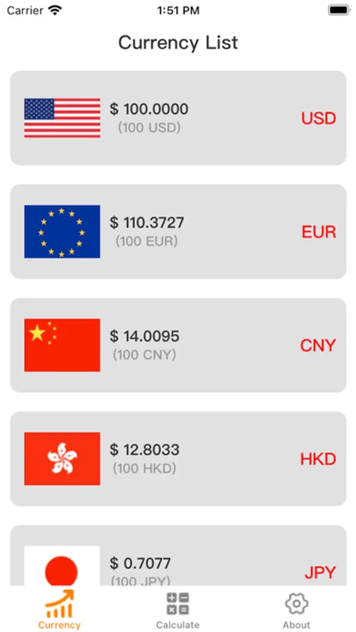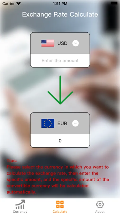 In the calculation page, the user can directly select the currency type that needs to be converted, and enter the amount, and you can get the converted currency amount.