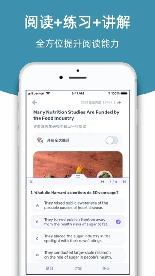 柠檬英语阅读是一款用于提升英语阅读能力和英语考试技巧的英语阅读App。
