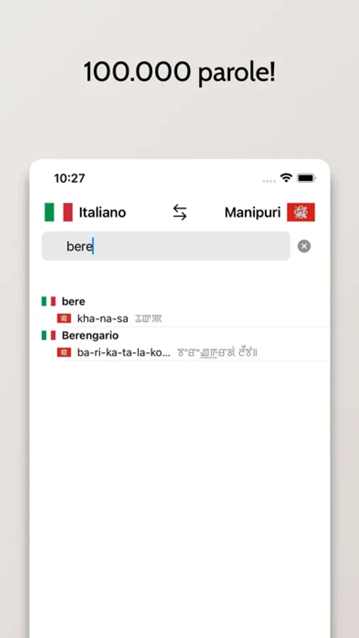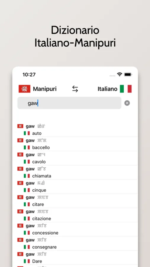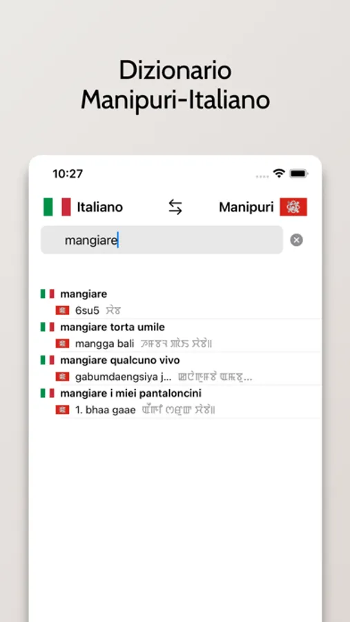 - Possibilità di cercare a partire da parole in Italiano o Manipuri