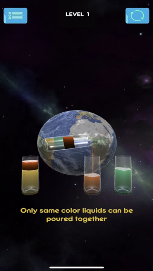 The Interstellar 3D Water Sorting game is a very interesting game that provides 3D scenes of interstellar space. Unlike the 2D version, the game provides 3D effects, making it more realistic and interesting in 3D scenes. Test players' wisdom and strategic abilities. Players need to classify the colored water in the cup until all colors are in the same cup. With the continuous upgrading of levels and the increasing number of bottles, the difficulty will gradually increase. This is a game that is both challenging and relaxing. Let's give it a try, and see how smart you can be!