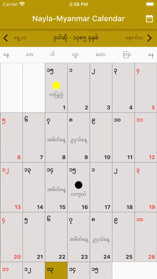 Nayla Akharpay is calendar like 100 years calendar. It is expressed with full moon day, fast day, pre fast day ,events, lucky day, unlucky day and astrological days. Easy search with year, month and day help to know about the day of detail.