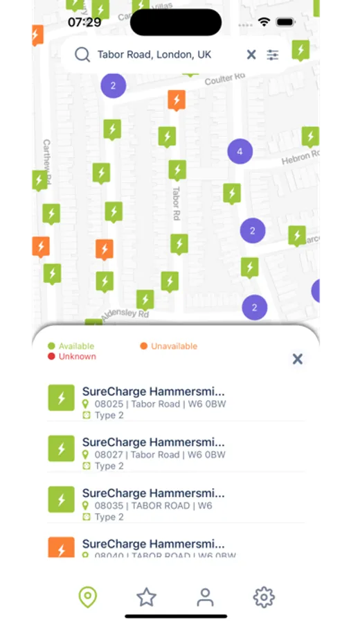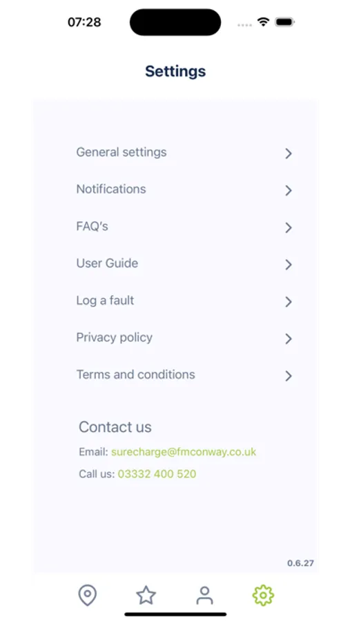 EV Charge point location and control; locate and access SureCharge network charge points and charge your car, always observe occupant and vehicle safety and local regulations.