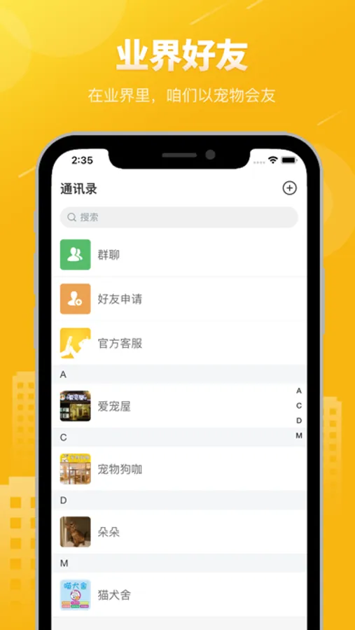 覆盖全国99%的地级市宠物店,打通城市之间地合作边界,宠物店家好友沟通更方便、更高效、App内有多种沟通方式,也可以直接打电话、跨城市,跨区域开展合作。