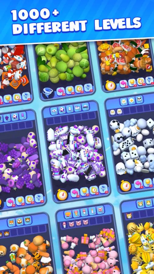 Diverse Adventures with Over 400 3D Models: Delve into a wide-ranging assortment of more than 400 types of 3D models, including delectable foods, fresh fruits, bouncing balls, adorable toys, captivating animals, and much more! Each level brings a fresh visual delight, ensuring that you stay engaged and entertained with 3D matching challenges.