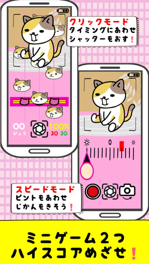 Speed Mode: Compete in a reflex-based game to capture the perfect moment when the cat stops headbanging. Quickly frame the shot, focus the camera, and press the shutter button at the right time.