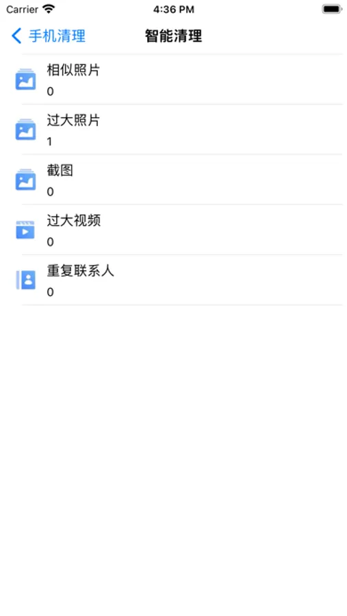 手机清理:智能扫描大文件、重复照片、重复视频、重复联系人,快速清理手机空间。