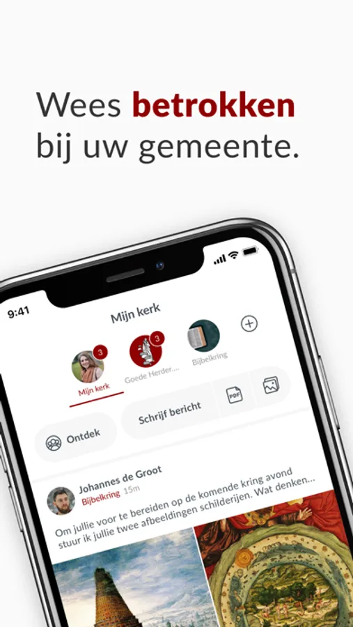 Dankzij onze unieke groepenstructuur helpen wij kerken beter te communiceren. Met de hele gemeenschap, maar ook onderling. U kunt zelf groepen toevoegen en mensen daarvoor uitnodigen. Een slimme timeline zorgt er voor dat iedere gebruiker persoonlijke en relevante informatie ziet.
