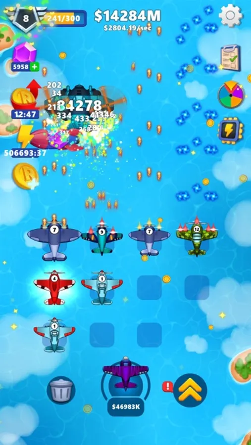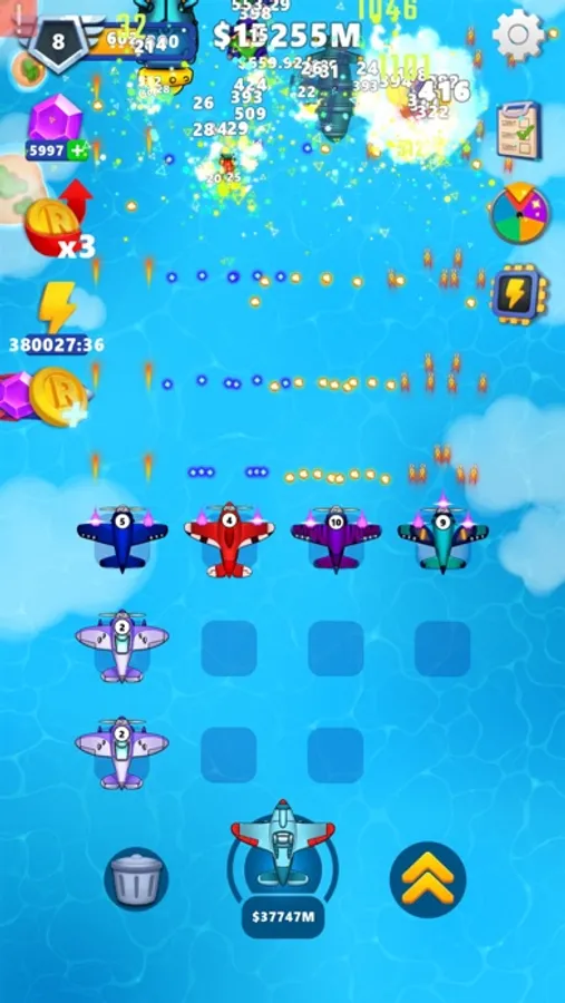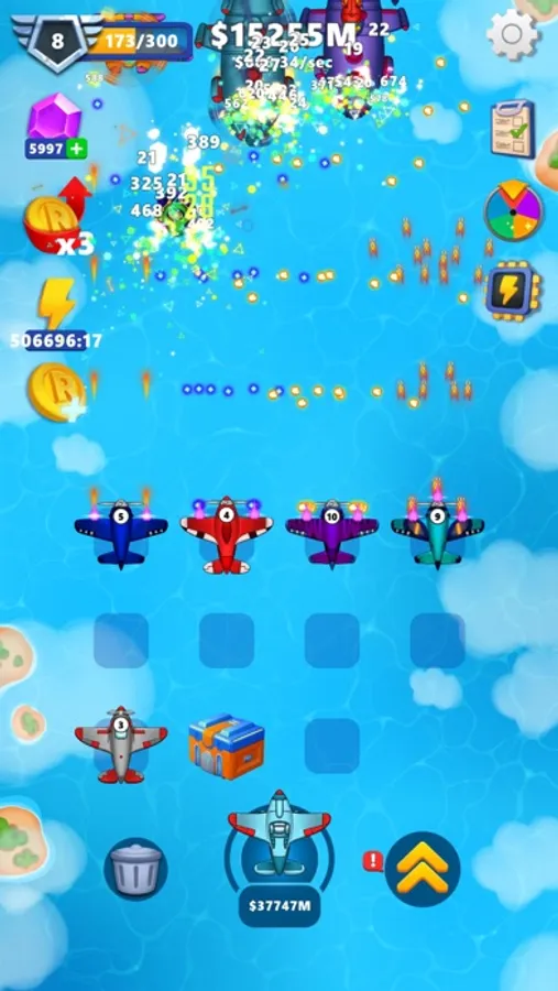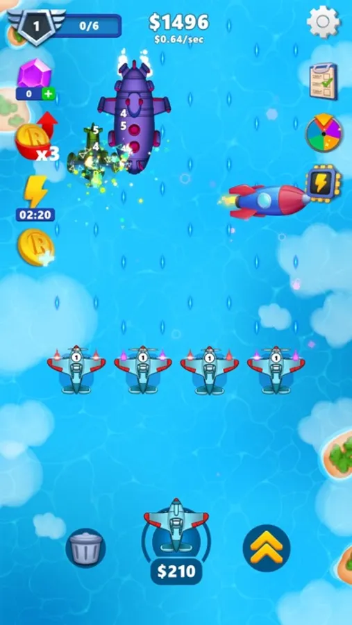 Combine identical planes to unlock upgraded versions and create an unstoppable fleet. The more you merge, the mightier your aircraft become.