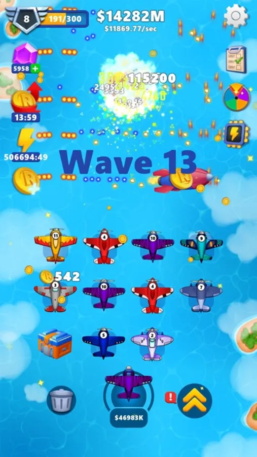 Collect valuable coins with a simple tap on your planes to fund your acquisitions and upgrades enabling you to purchase even more aircraft and amplify your aerial dominance.
