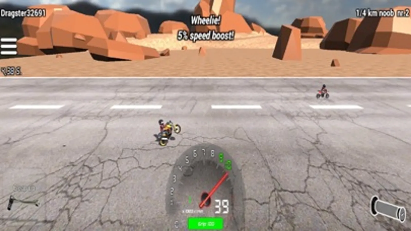 HOW TO PLAY: Hold clutch and throttle and rev your bike to green zone, then release clutch and drive to goal!