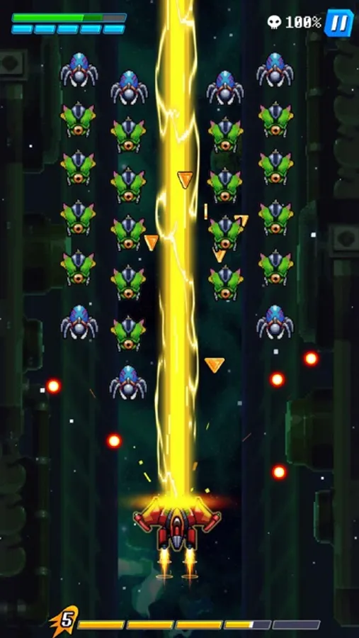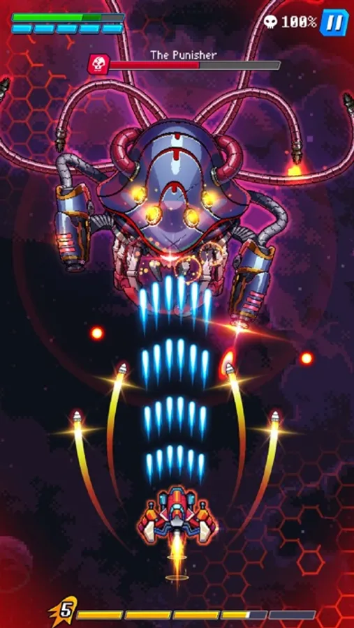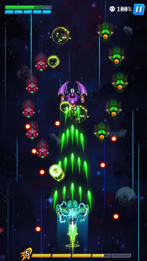 Hold and guide your spaceship with intuitive drag controls. It automatically unleashes its firepower, leaving no room for hesitation.
