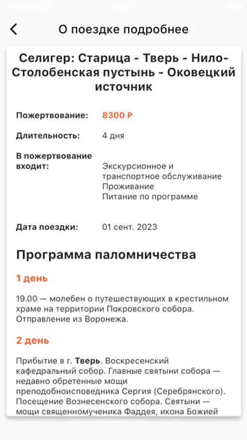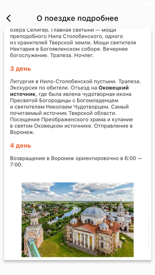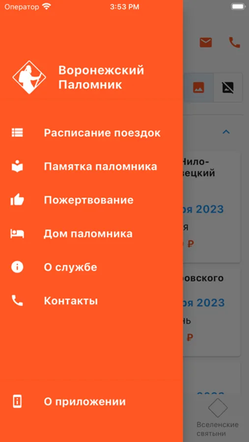 Мобильное приложение предназначено для отображения актуальной информации Паломнического Центра Воронежской Епархии Русской Православной Церкви, в первую очередь - расписания поездок паломнических групп. Для работы приложения требуется доступ в Интернет.