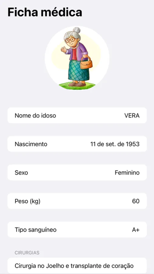 Facilite a jornada do cuidado com idosos com o Vera Care! Reúna todas as informações essenciais de saúde em um só lugar: