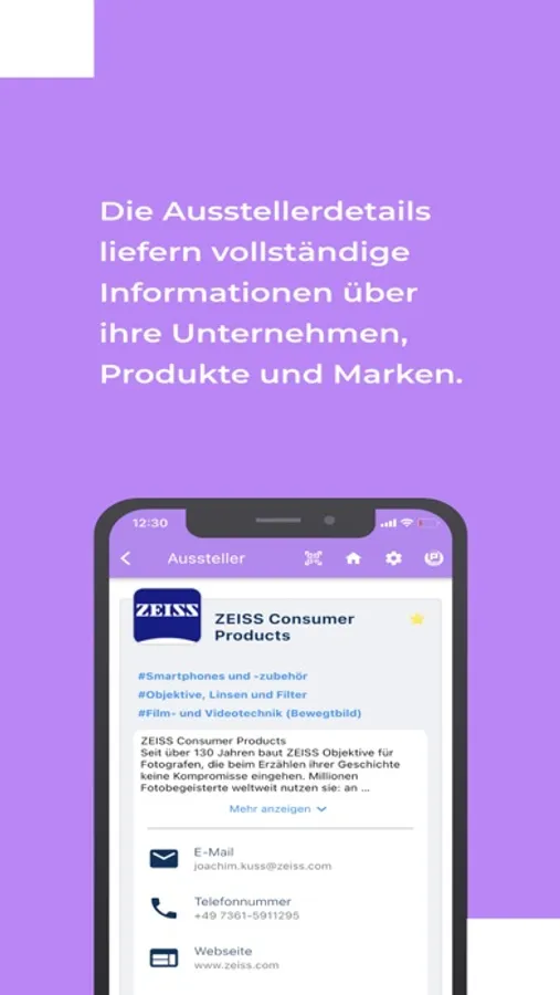 Exhibitor, product and brand directories as well as an interactive hall plan, the supporting program and all important information on travel, opening hours and visitor services. With the new Networking function, you also have the option of easily and efficiently entering contact data and using lead tracking as an additional service free of charge.