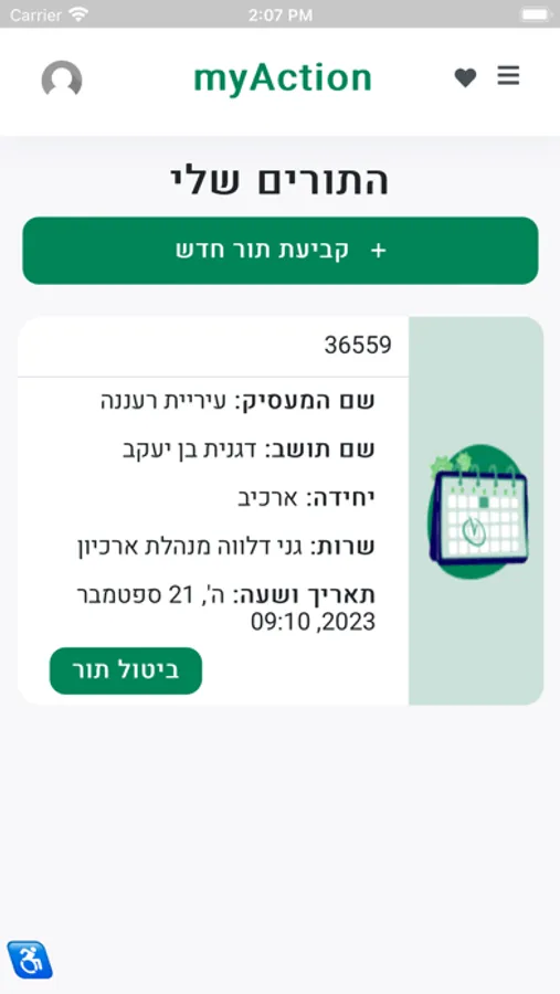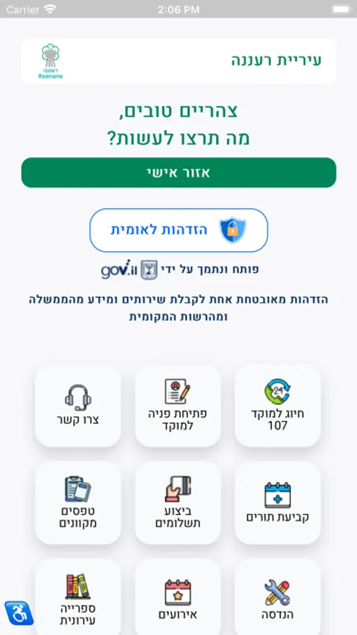 האפליקציה מאפשרת לתושב לפתוח פניות, לקבוע תורים , להזמין כרטיסים לאירועים ועוד, ללא צורך בהזדהות נוספת, מעבר להזדהות הכניסה לאזור האישי.
