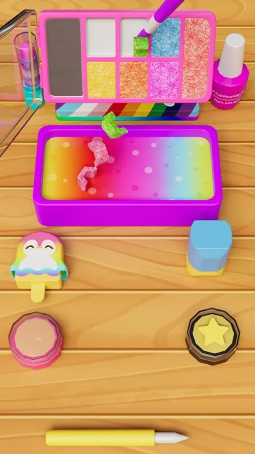Immerse yourself in a stress-relieving realm where lipsticks pop like bubbles and fidget toys transform into sources of delight. Embark on a journey that combines the joy of makeup with the tactile satisfaction of pressing and stretching, resulting in a harmonious symphony of colors and textures. Engage in the therapeutic practice of mixing and molding, and revel in the relaxing escape offered by this extraordinary girls' slime game.