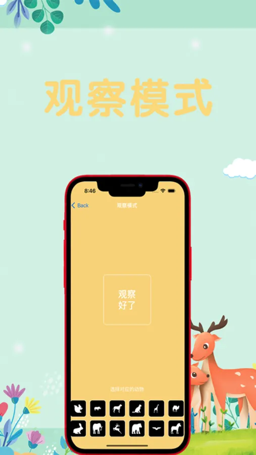 考察记忆动物的能力,在短时间内选中框框中的动物。