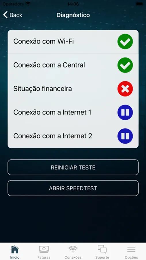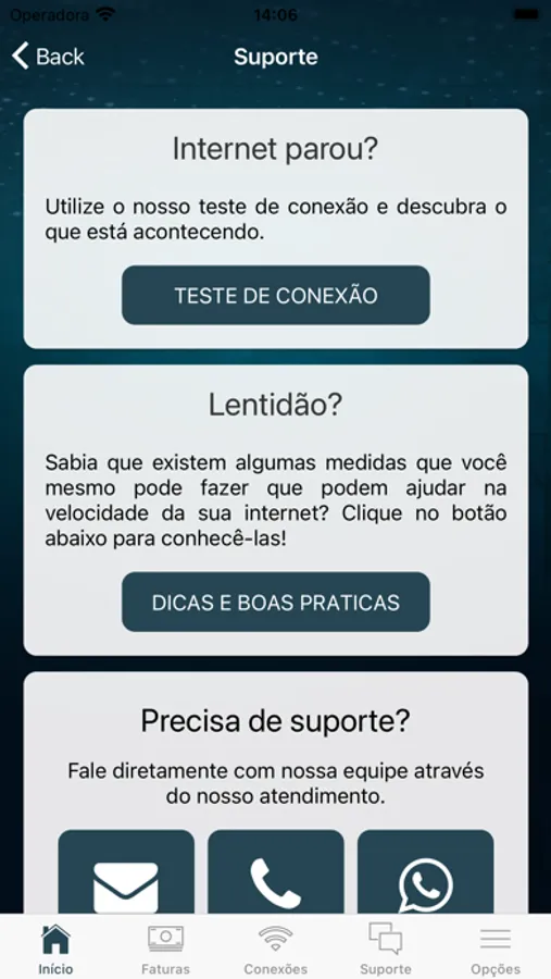 • Realização testes de conexão e velocidade;