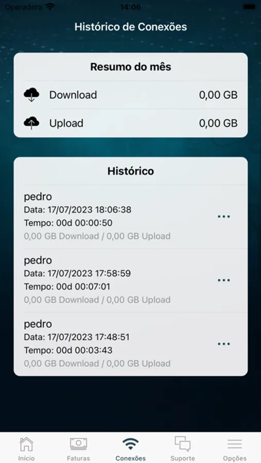 • Visualização de histórico de conexões;