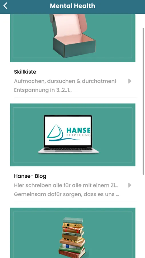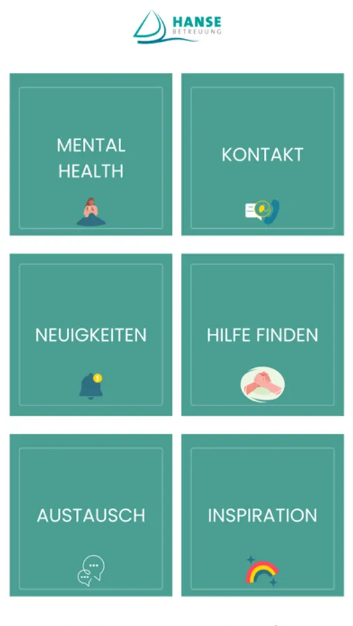 Eine App der Hanse Betreuung Eingliederungshilfe mit dem Fokus auf Information über den Träger und seelische Gesundheit.