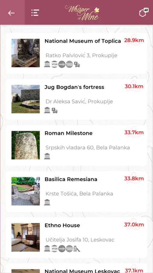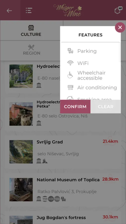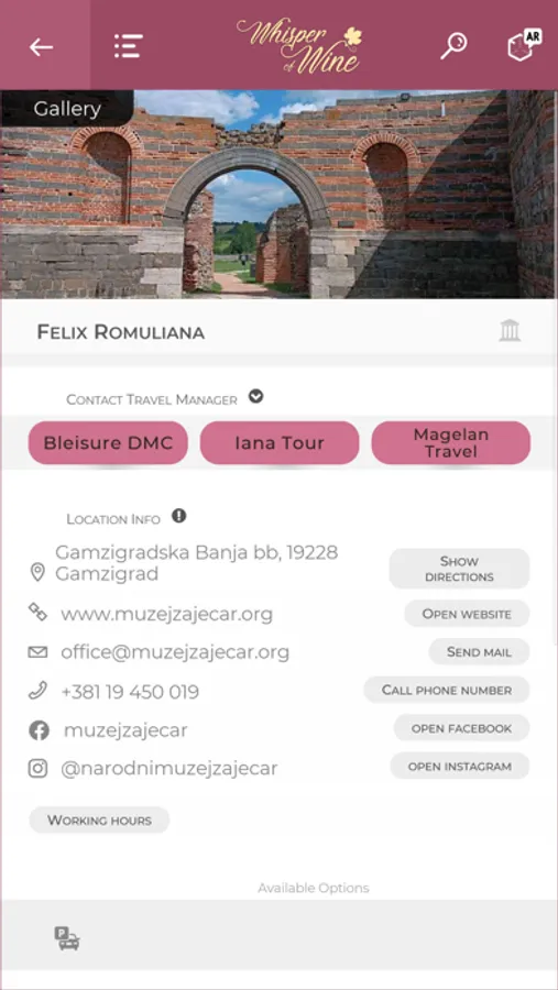 After downloading using Wi-Fi, the Whisper of Wine AR app works offline. This digital solution is solving the shortcomings that will improve the travelers' experience in real-time (i.g. cities, prehistory sites, archaeological sites, fortresses, protected natural sites, industrial heritage sites, wineries, gastronomy, accommodation, restaurants)