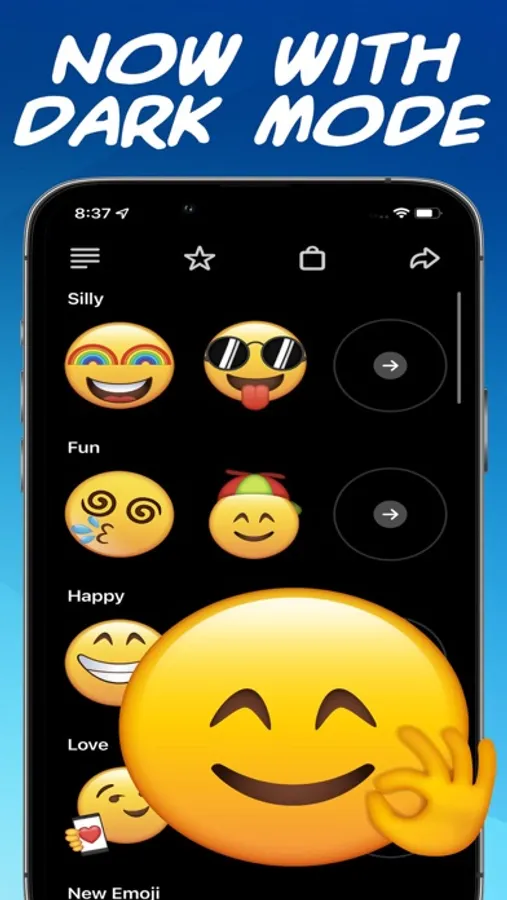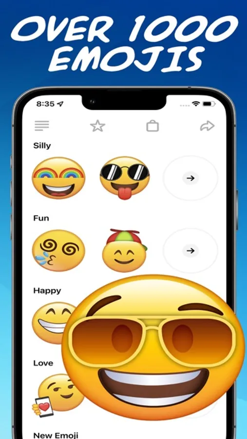 Welcome to the Emoji App by Emoji World! We’re making it easier than ever to share and express yourself through emojis. It doesn’t matter whether you’re a beginner or an emoji master – this app has something for everyone – with over 1000+ emojis categorized into different sections, you’ll always find the perfect emoji to express your thoughts, feelings, and emotions.