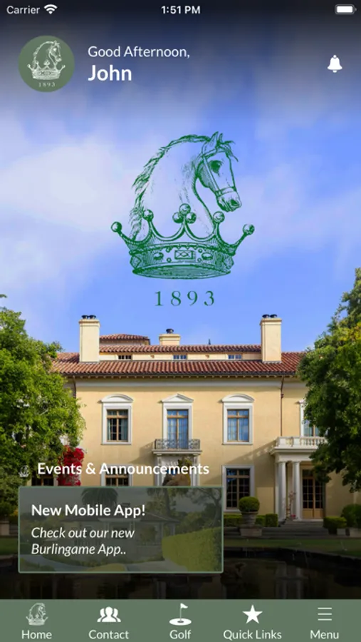 Welcome to the Burlingame CC app, where the experience of our members is our primary focus. We have developed a custom app to enhance your experience on and off property. With the touch of a button, you can request your clubs from the bag room or even view and pay your statement. We have even created a digital membership card. We also have a full member photo directory and of course, you'll get the latest updates from the club. We hope you enjoy the new, digital Burlingame CC experience.