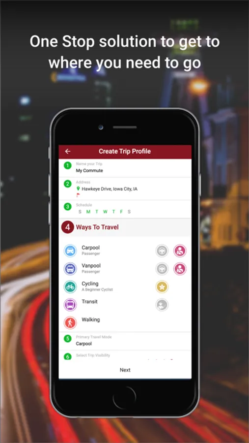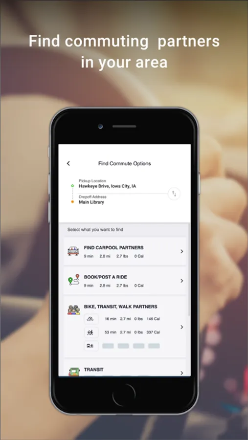 UI Rideshare Network is an easy way to search options for getting to and from the University of Iowa campus. Students and employees can find carpool partners, employee van pools, and bus routes. You can also find biking and walking routes.