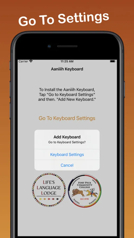 2. Select "Go to Keyboard Settings"